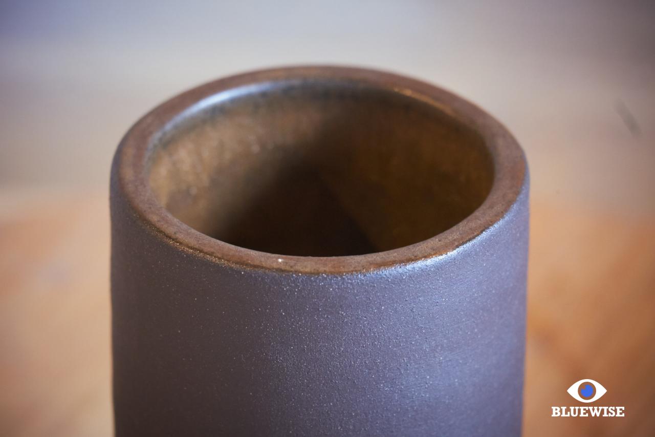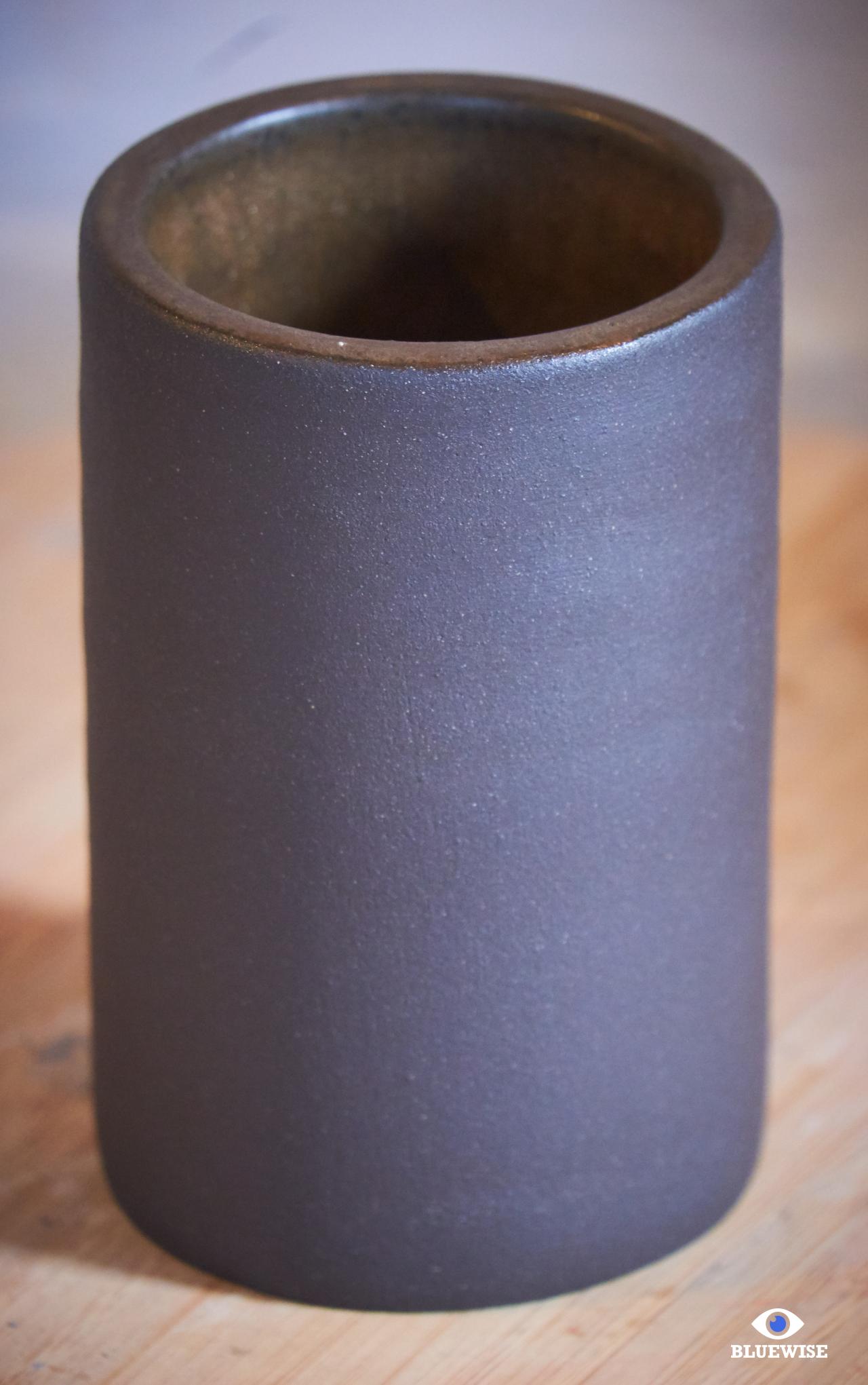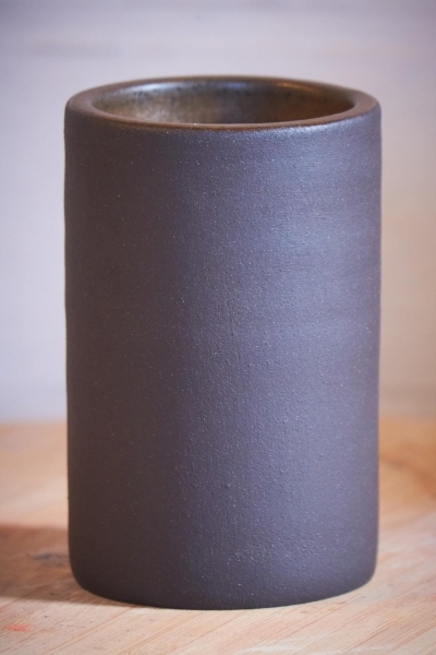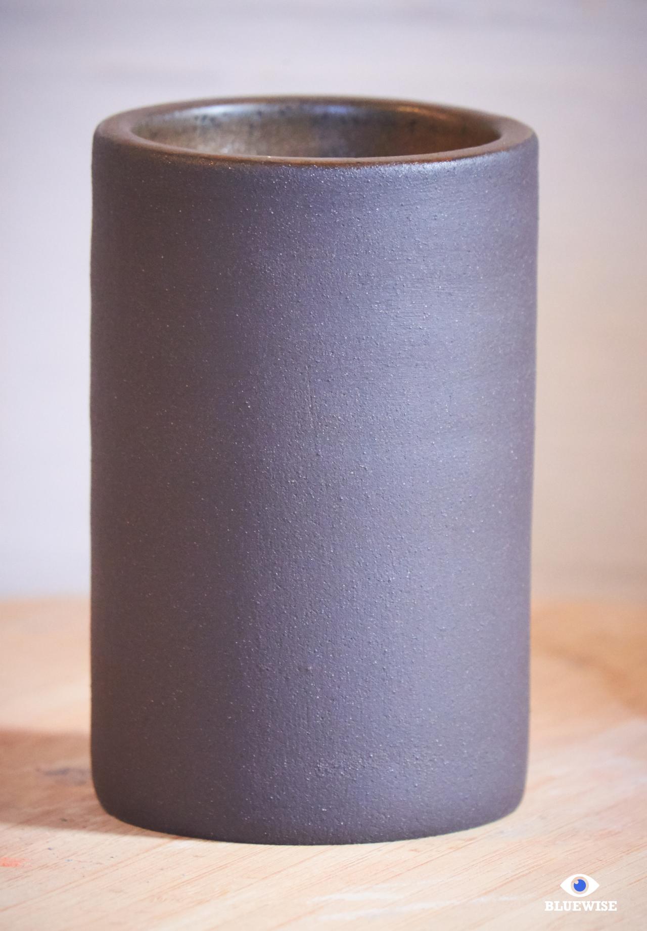 Kommetje/potje geprint in donkere klei en afgewerkt met een mat bruine kleur aan de binnenkant. De buitenkant is niet bewerkt en heeft een matte zwarte kleur.