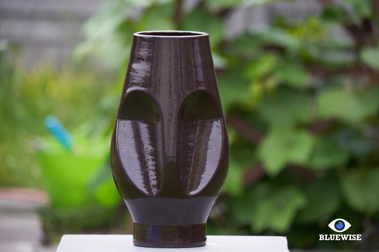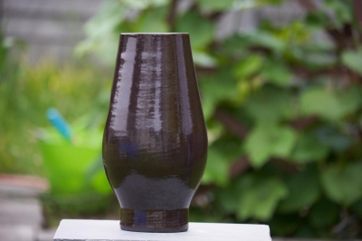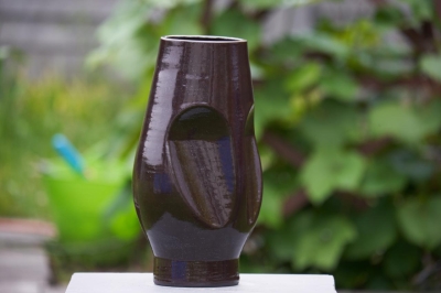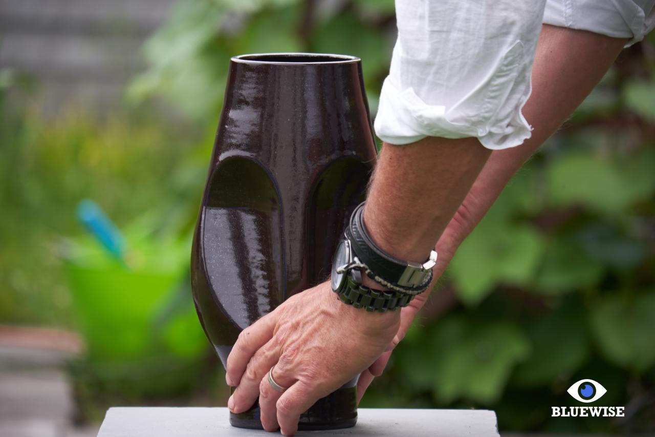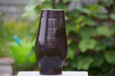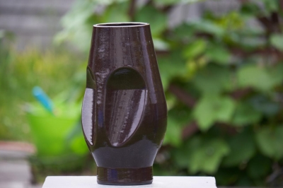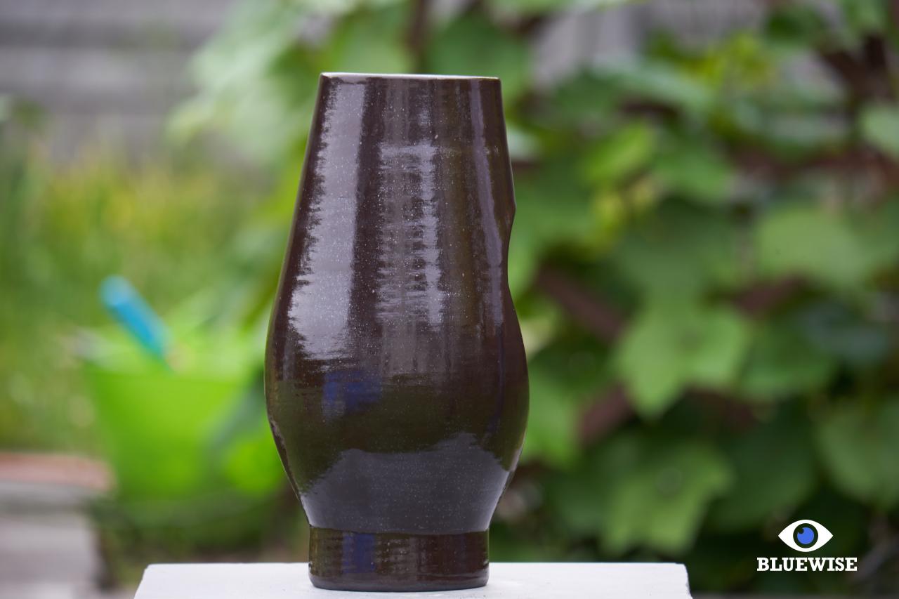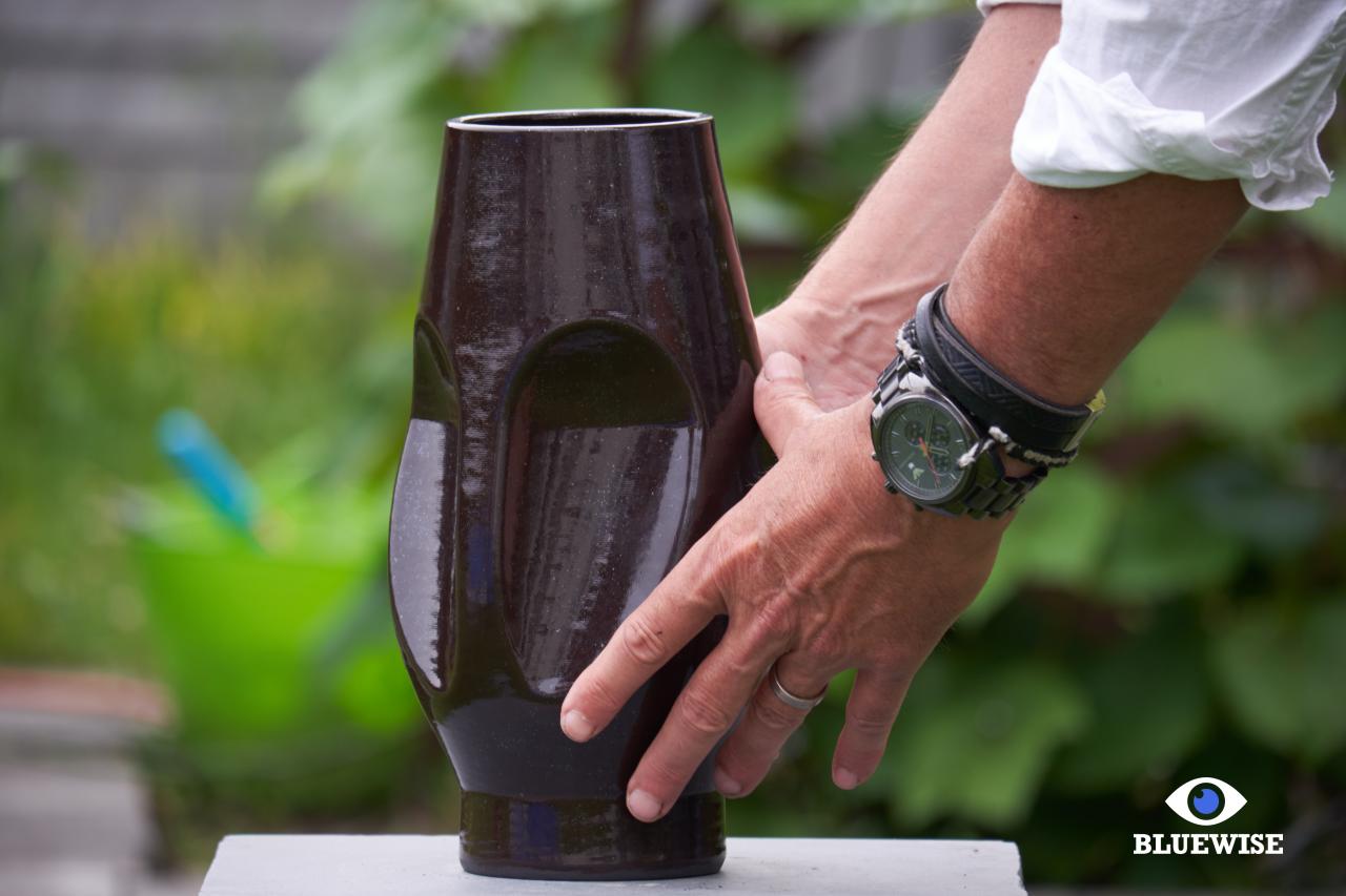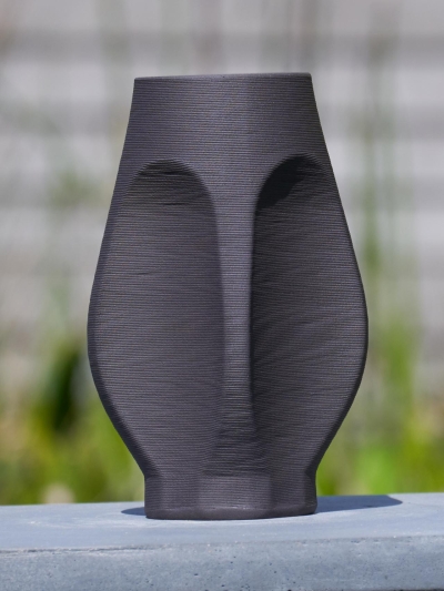 Object/vaas geprint in zwarte klei met een glanzende afwerking.