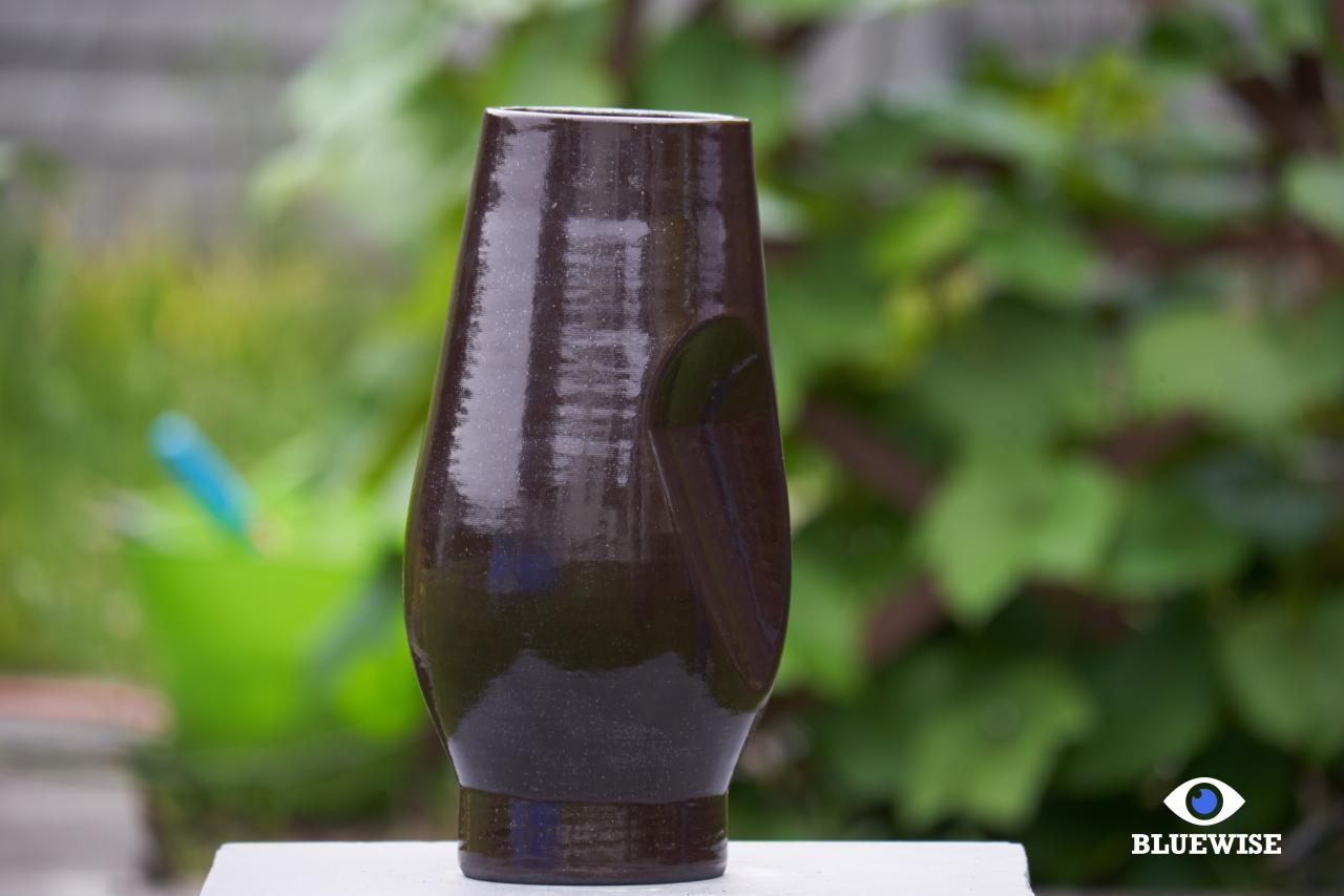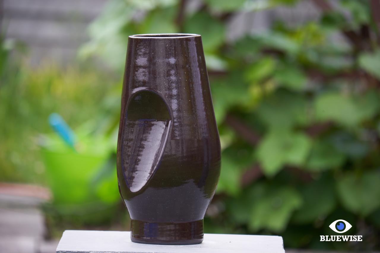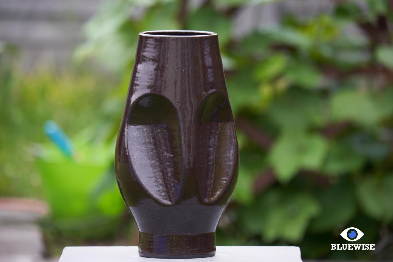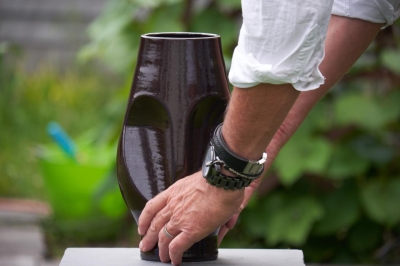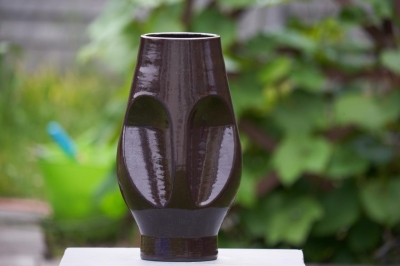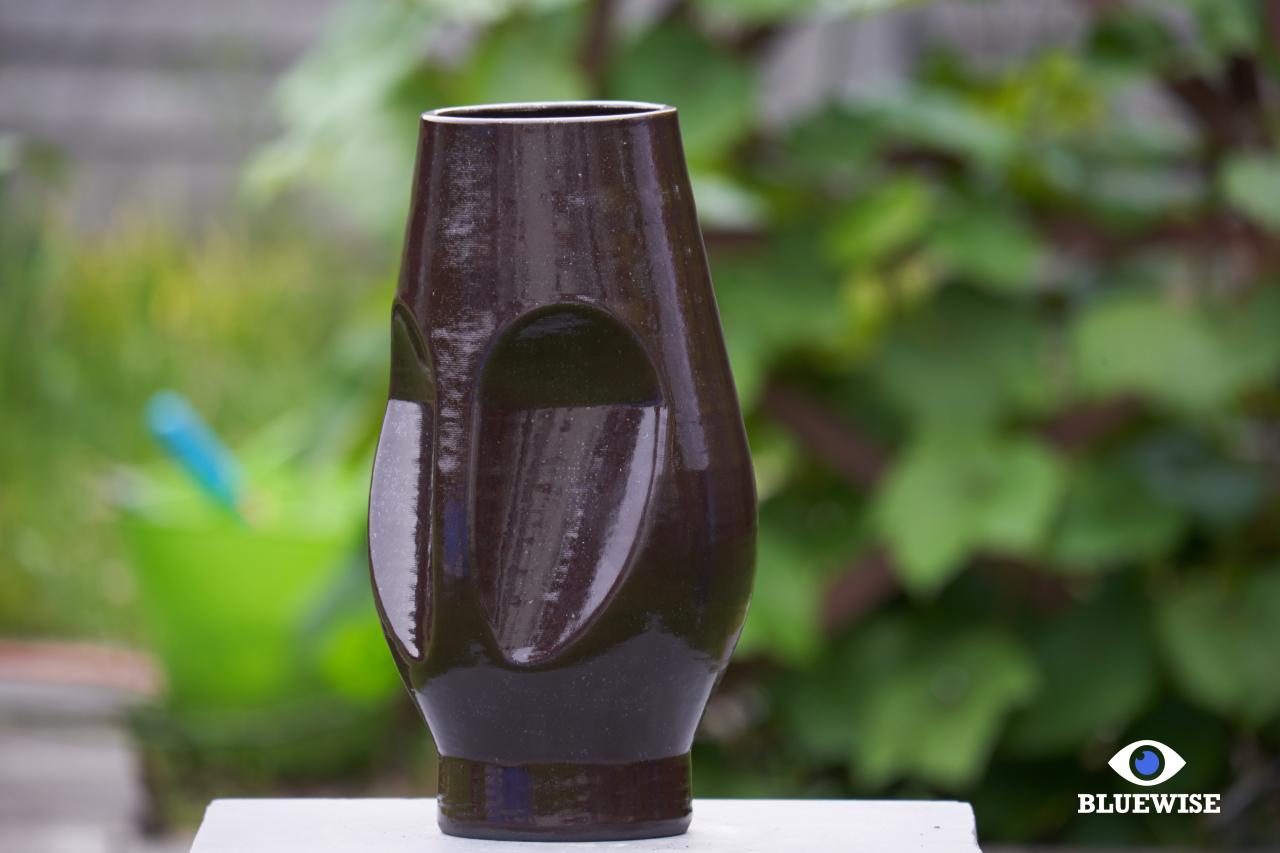 Object/vaas geprint in zwarte klei met een glanzende afwerking.