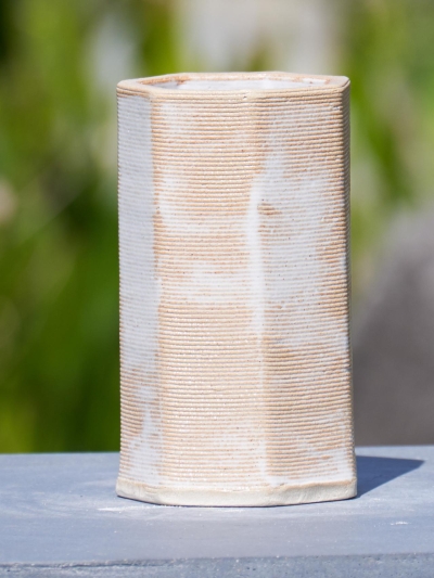 Hoekig vaasje in lichte klei met een matte afwerking