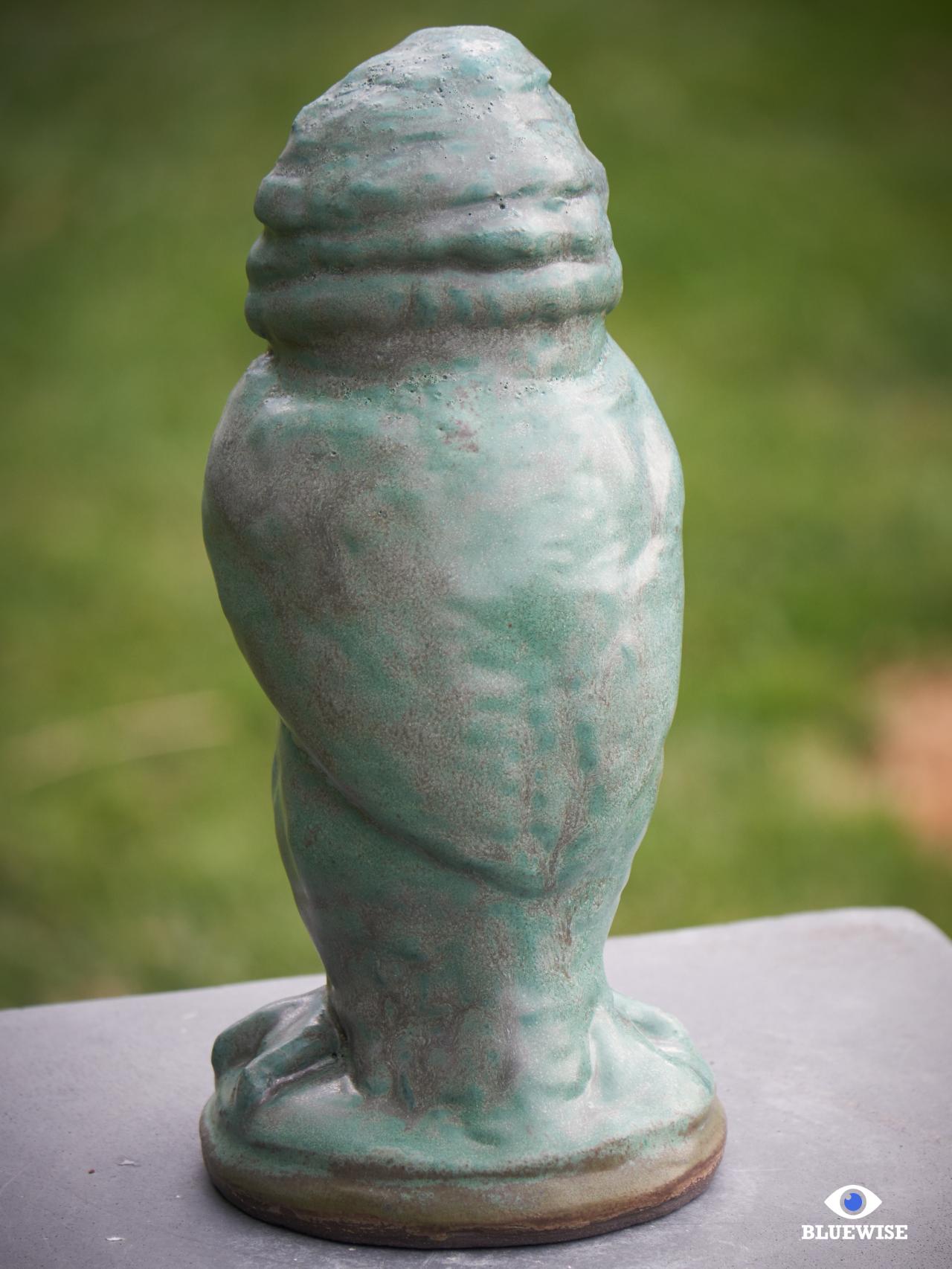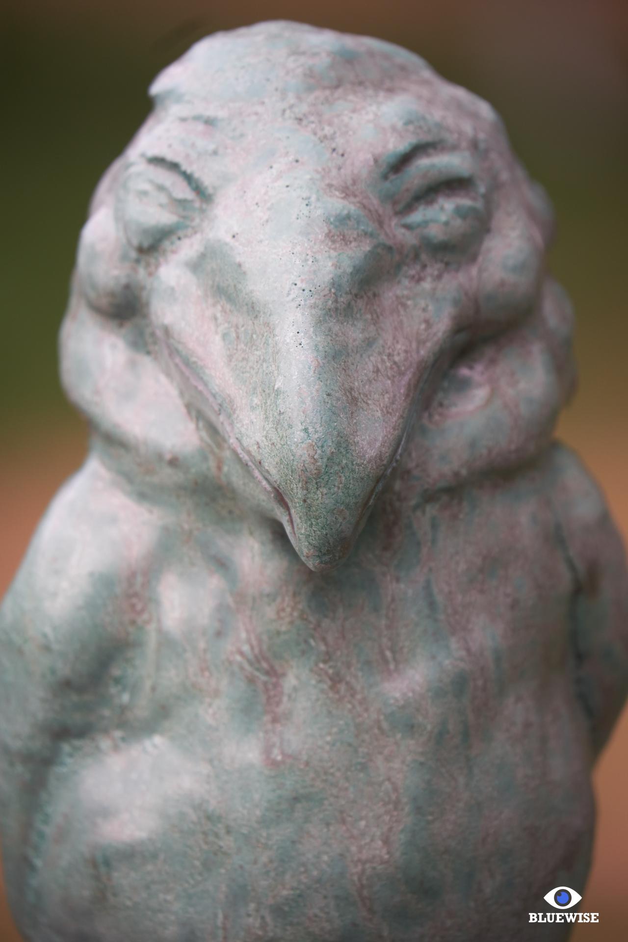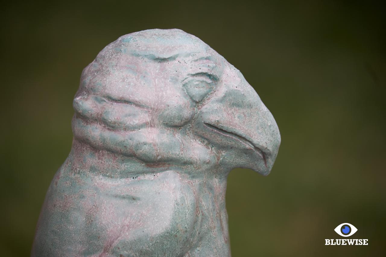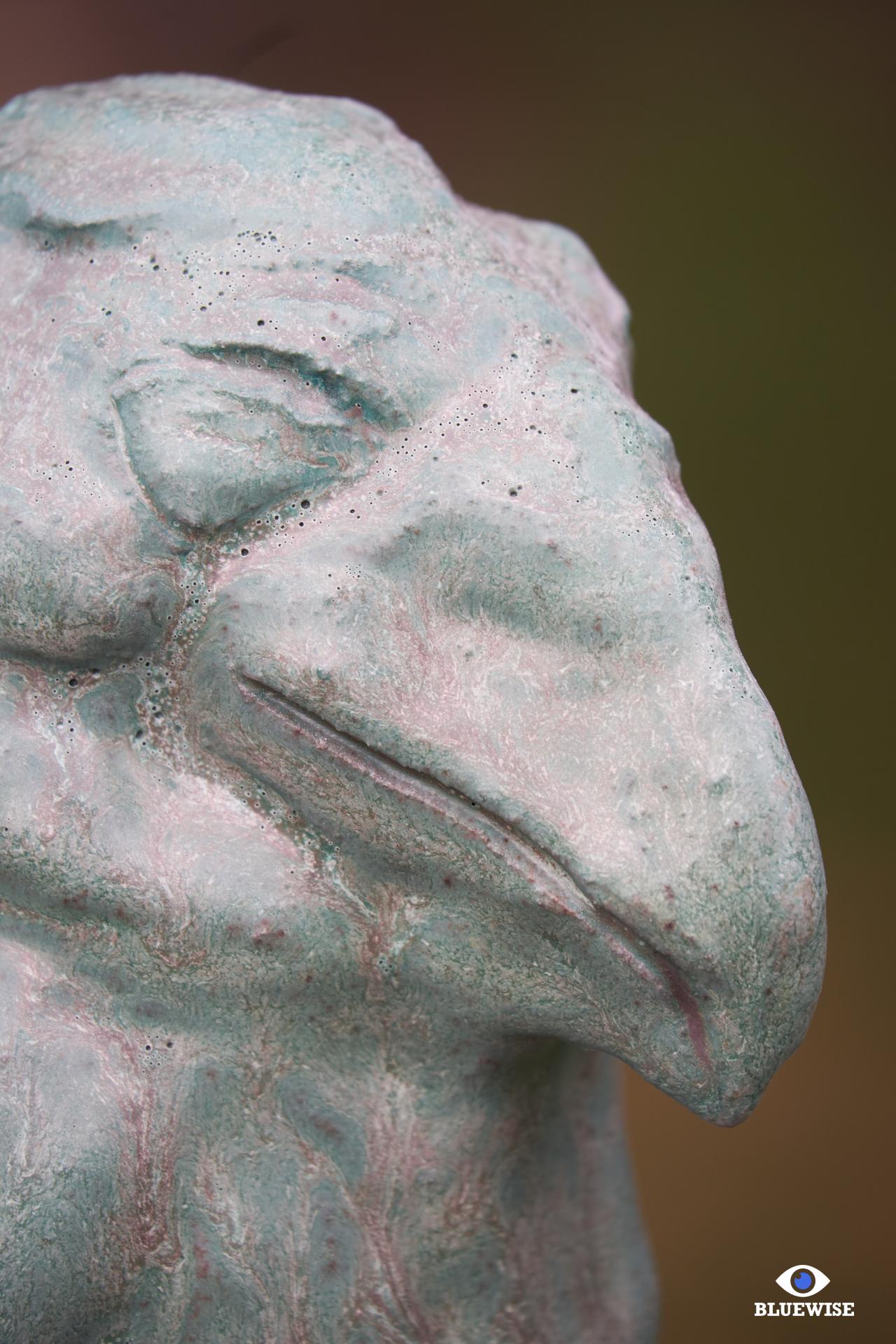 Vogel geprint in donkere klei en afgewerkt met een verweerde groene kleur.