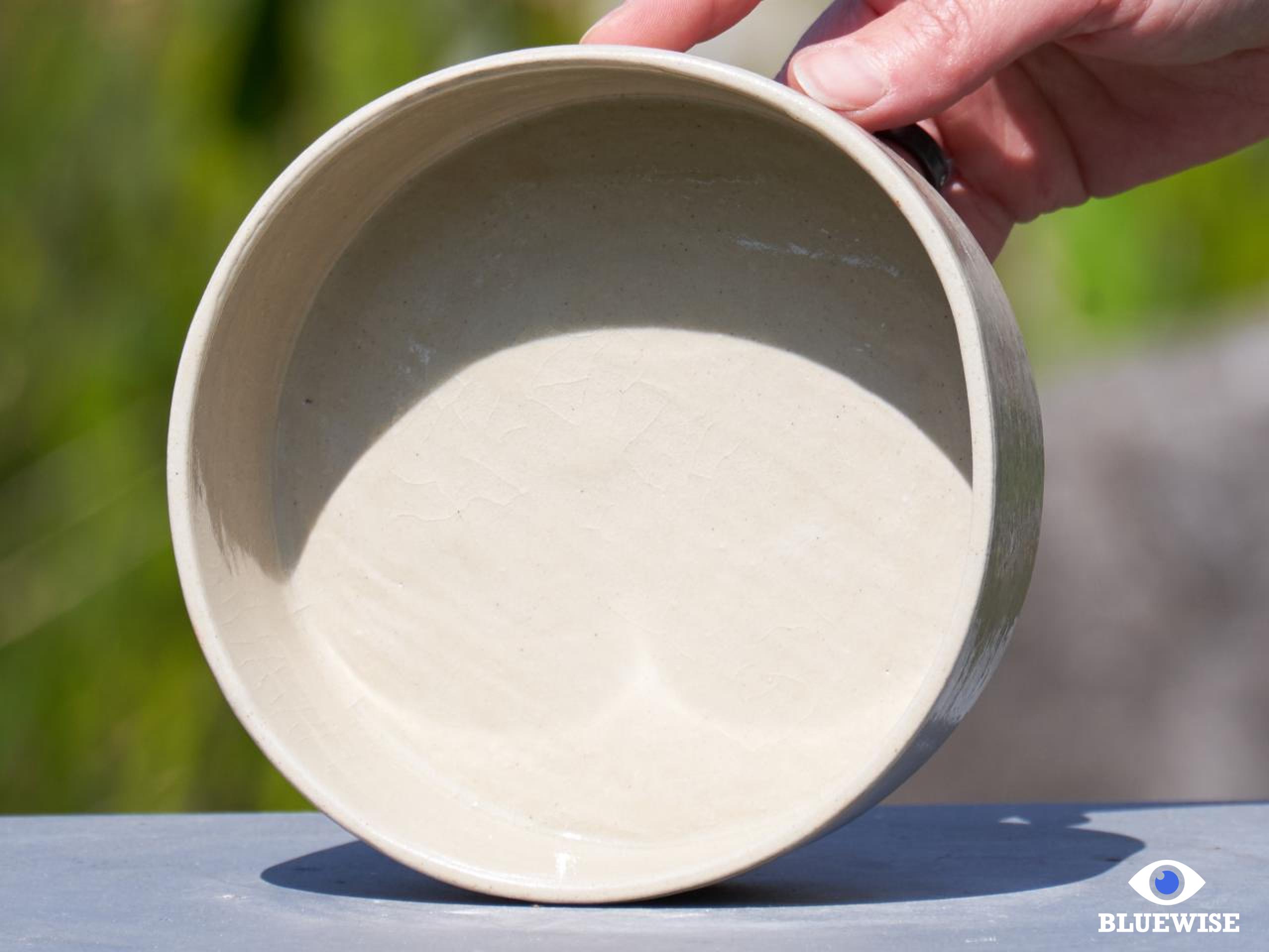 Klein kommetje geprint in lichte klei met een transparante glanzende afwerking.