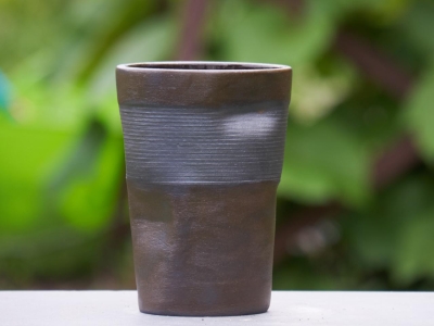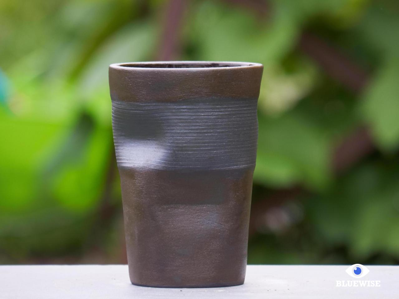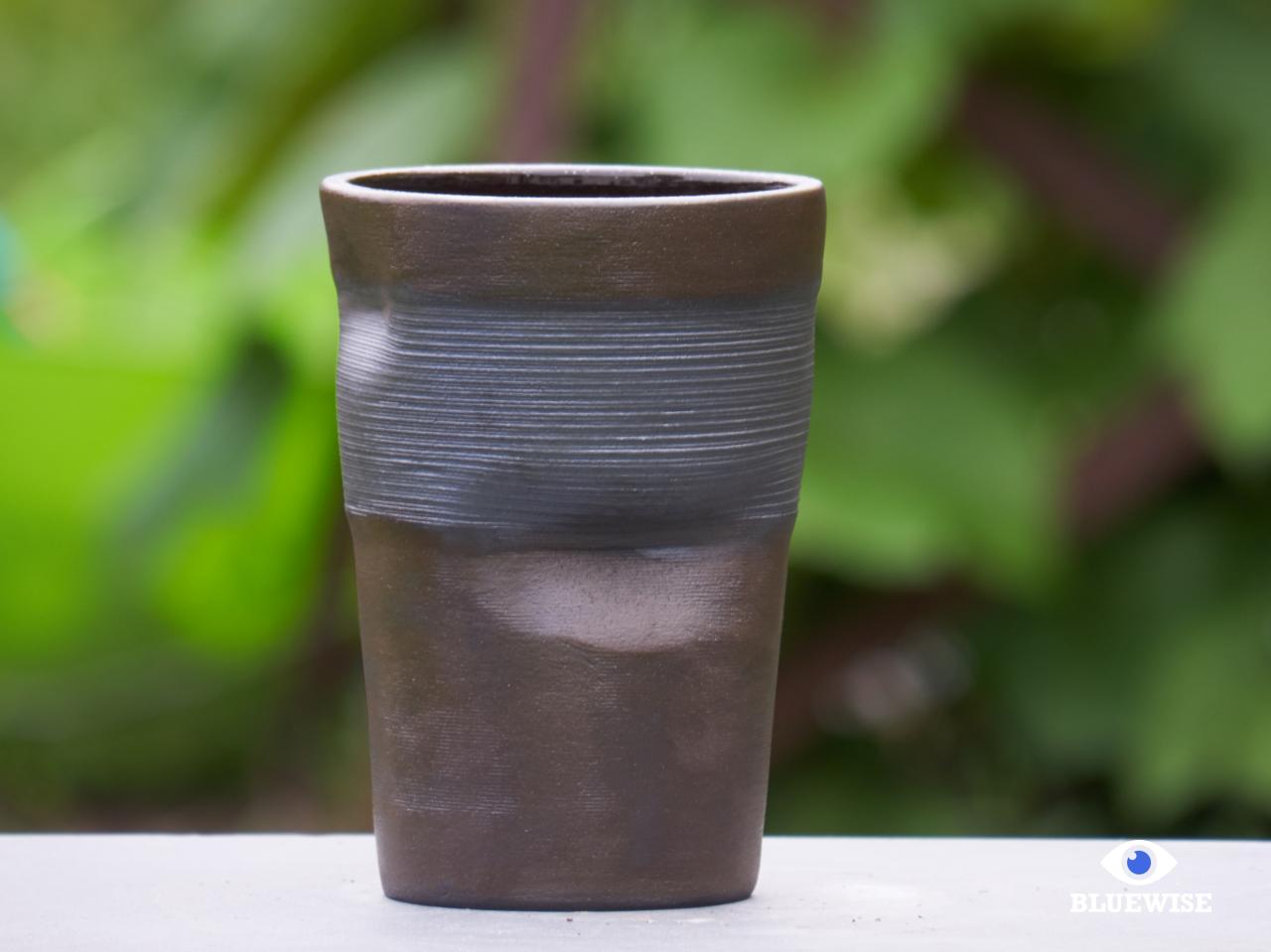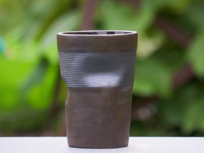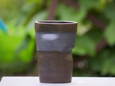 Gekreukt vaasje/bloempot geprint in donkere klei.