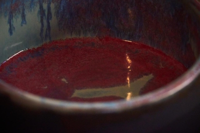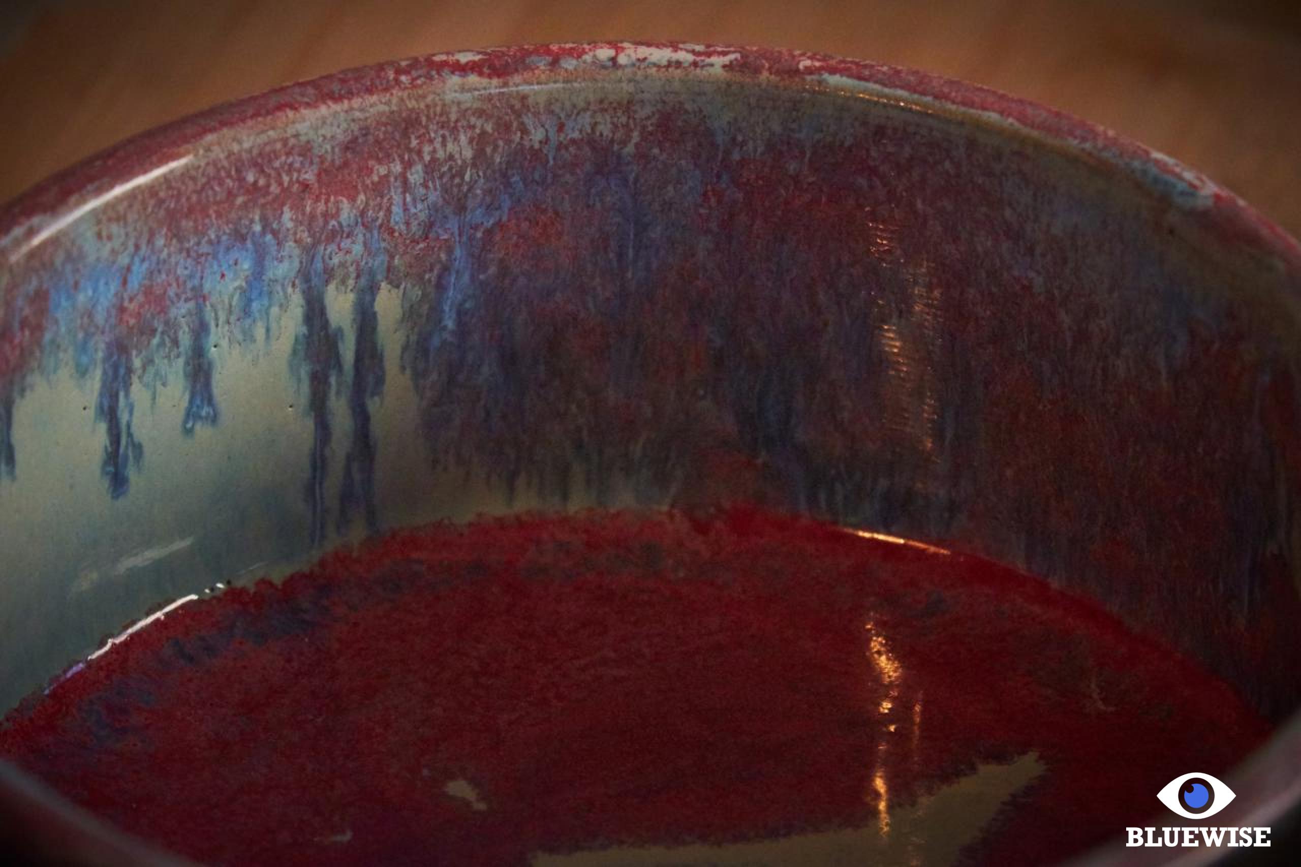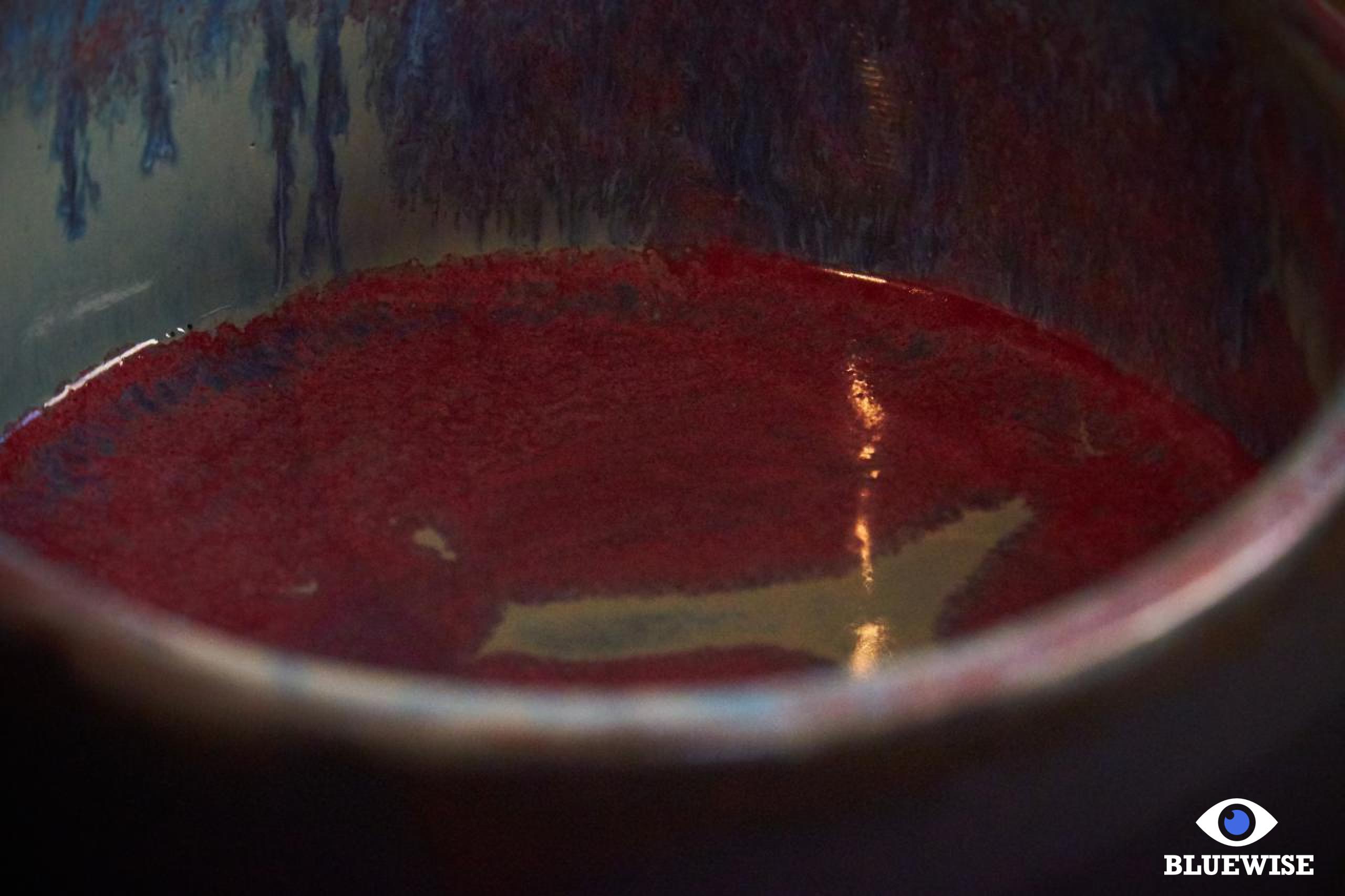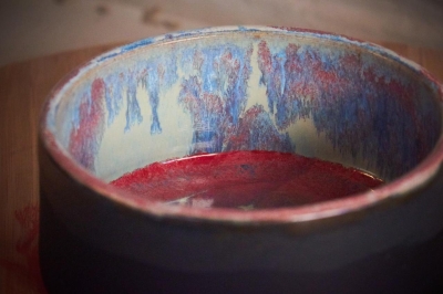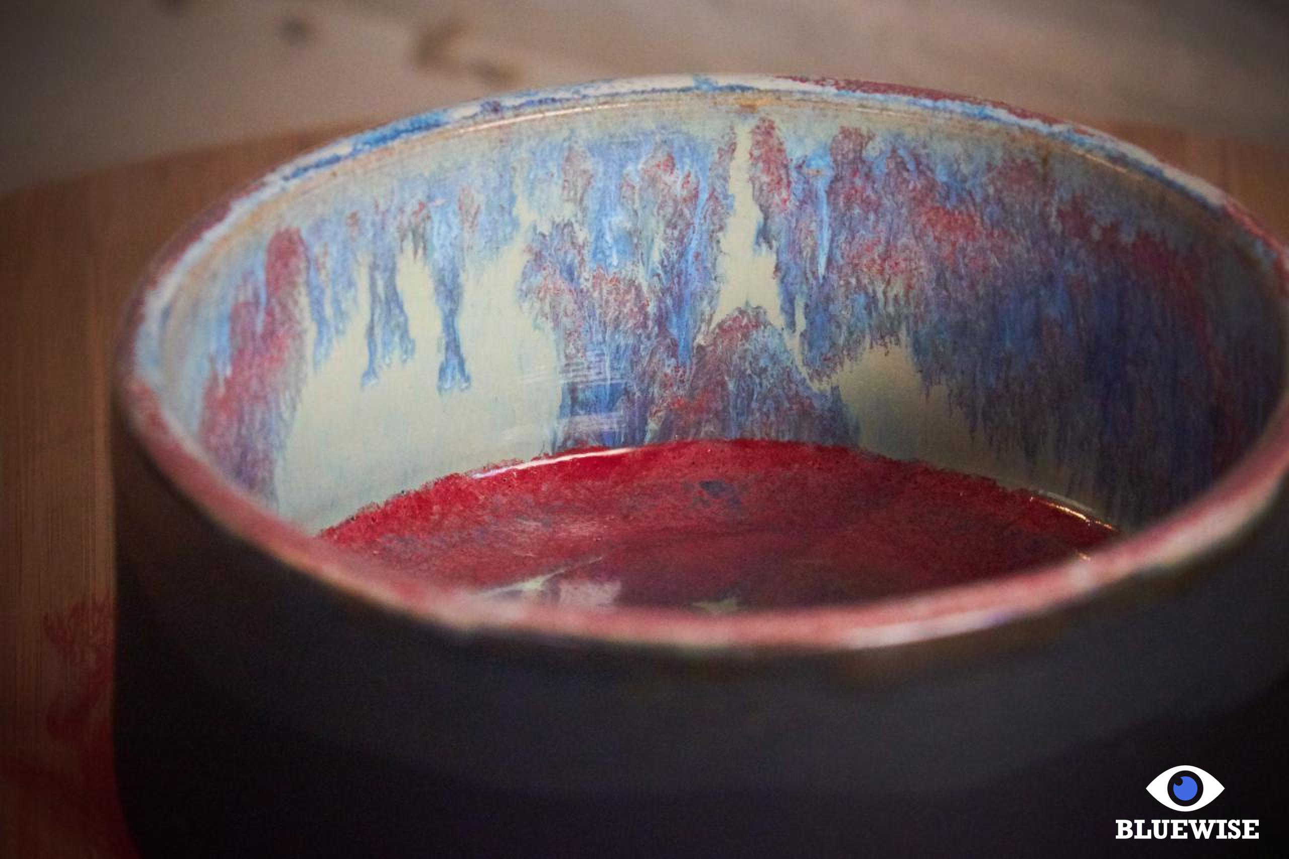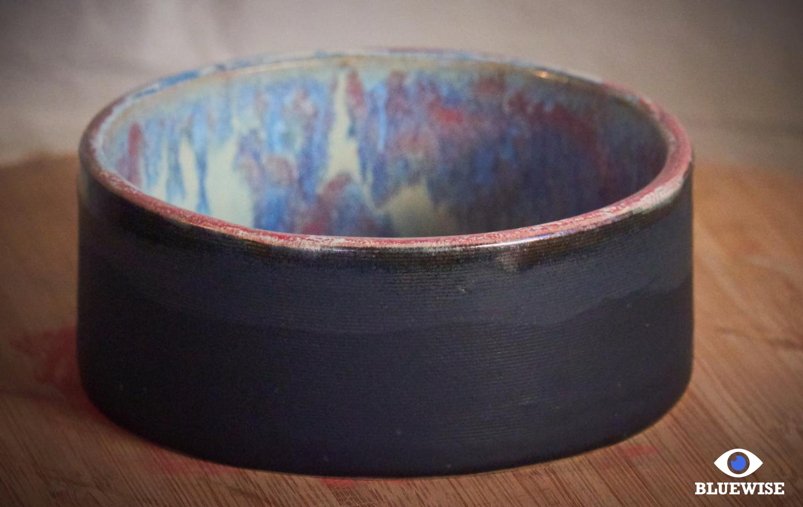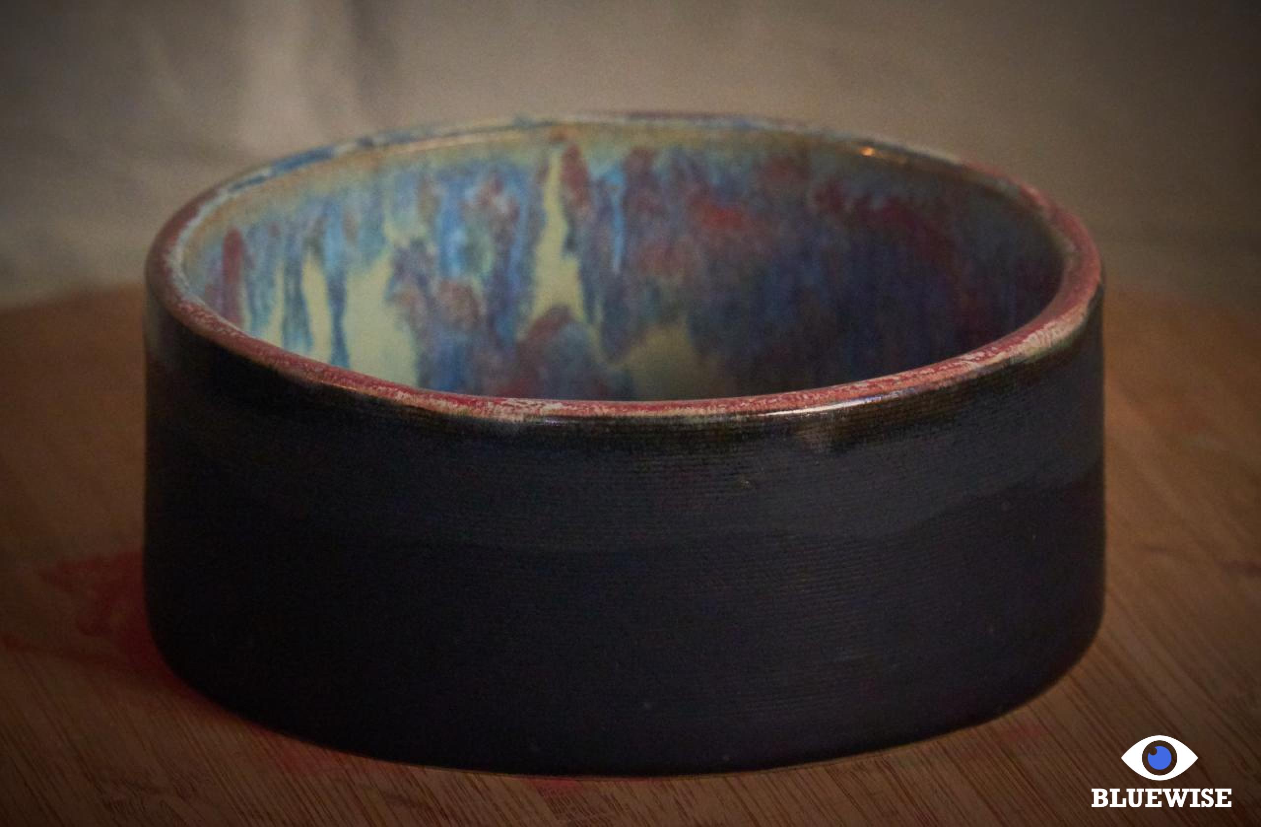 Kommetje Candidasa geprint in lichte klei en afgewerkt met een mat zwarte kleur aan de buitenkant en aan de binnenkant een glanzende blauw-fuchsia kleur.
